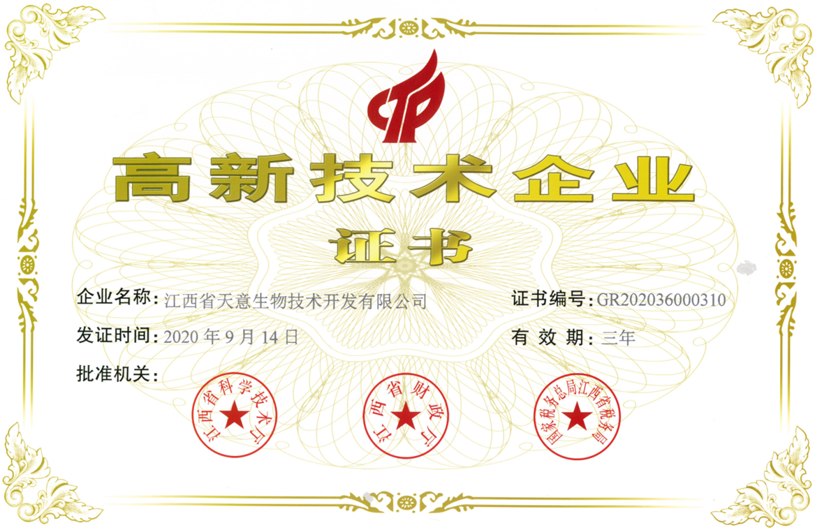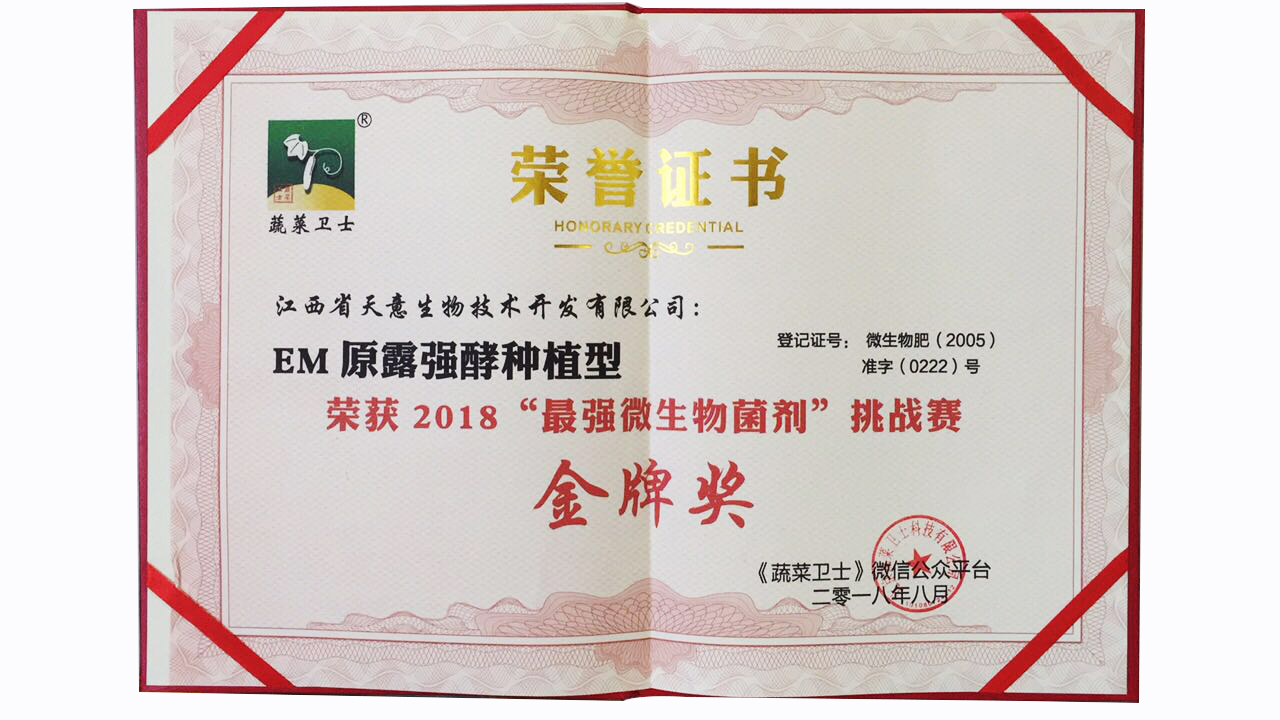 2000年,天意企業(yè)獲得高新技術(shù)企業(yè)稱號,之后每隔三年直至今天均連續(xù)獲得國家高新技術(shù)企業(yè)稱號。同年,EM原露獲得省科技廳頒發(fā)的“優(yōu)秀新產(chǎn)品”證書。