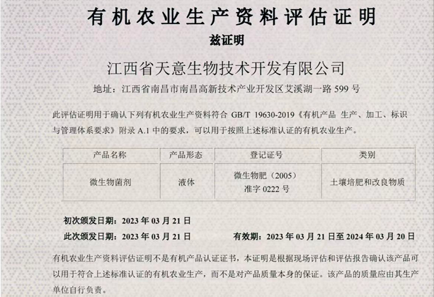 2001年,EM原露獲得農(nóng)業(yè)部下發(fā)的飼料添加劑生產(chǎn)許可證和微生物肥料登記證。